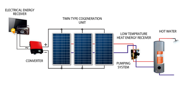 By using TWIN type collectors we can obtain both electrical and heating power